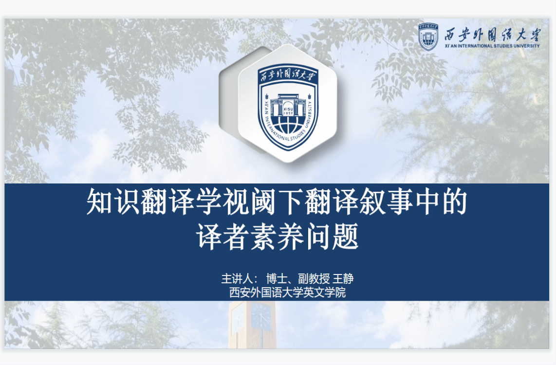 邀请了西安外国语大学英文学院王静副教授面向全体教师线上作了题为“知识翻译学视阈下翻译叙事中的译者素养问题”的学术讲座。