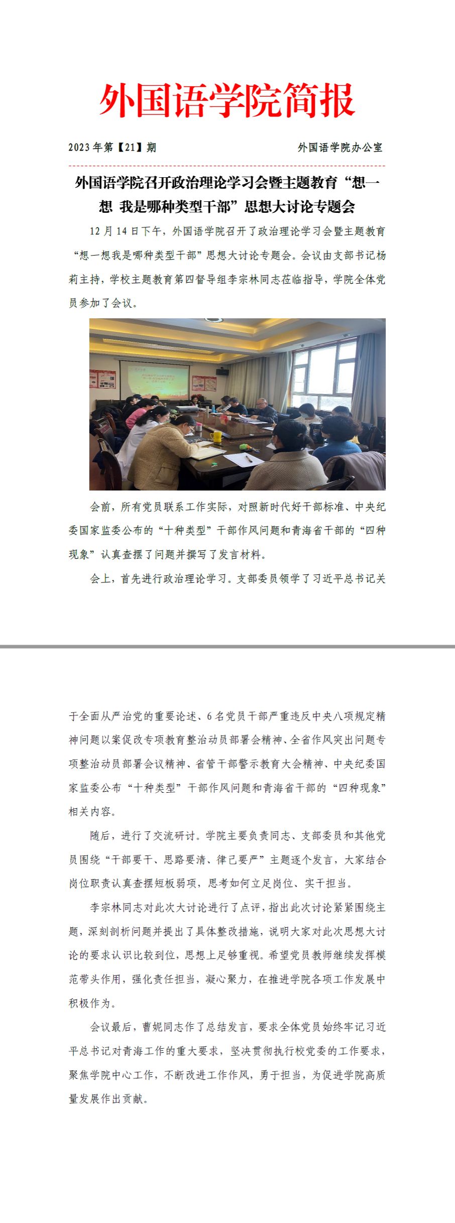 色色直播 召开政治理论学习会暨主题教育“想一想,我是哪种类型干部”思想大讨论专题会