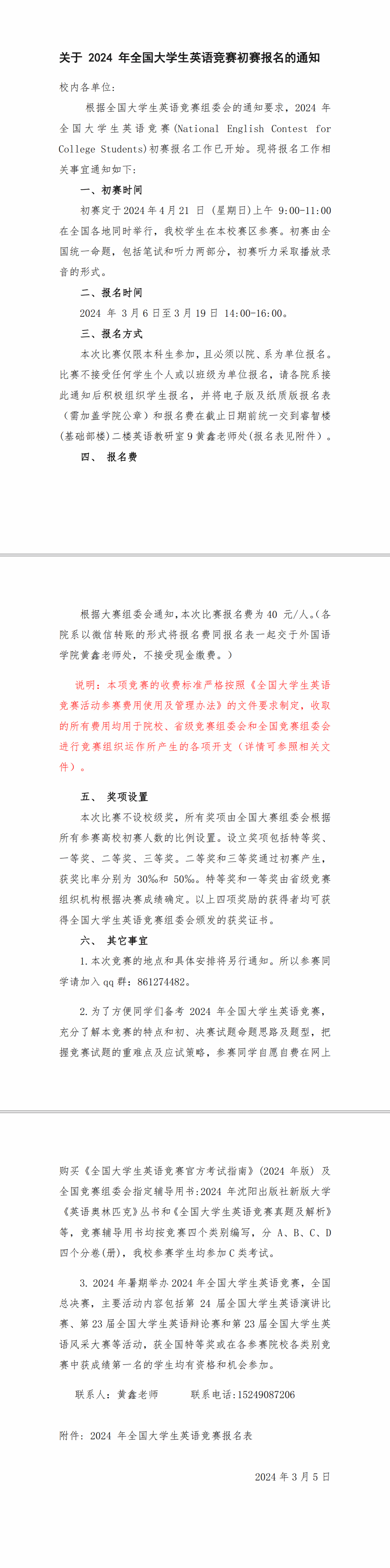 关于 2024年全国大学生英语竞赛报名的通知
