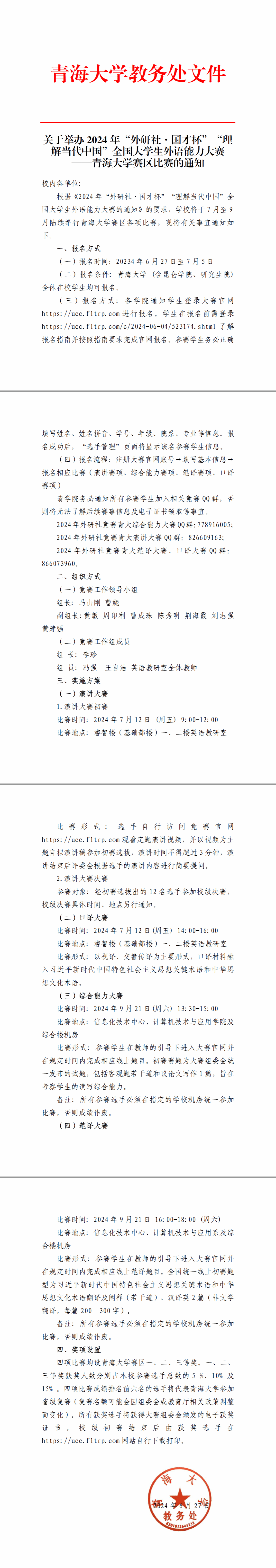 关于举办2024年“外研社国才杯”“理解当代中国”全国大学生外语能力大赛色色直播 赛区比赛的通知