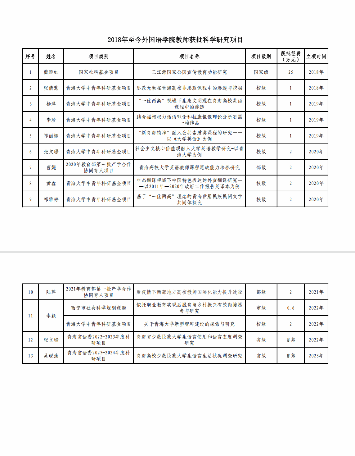 科研项目情况统计