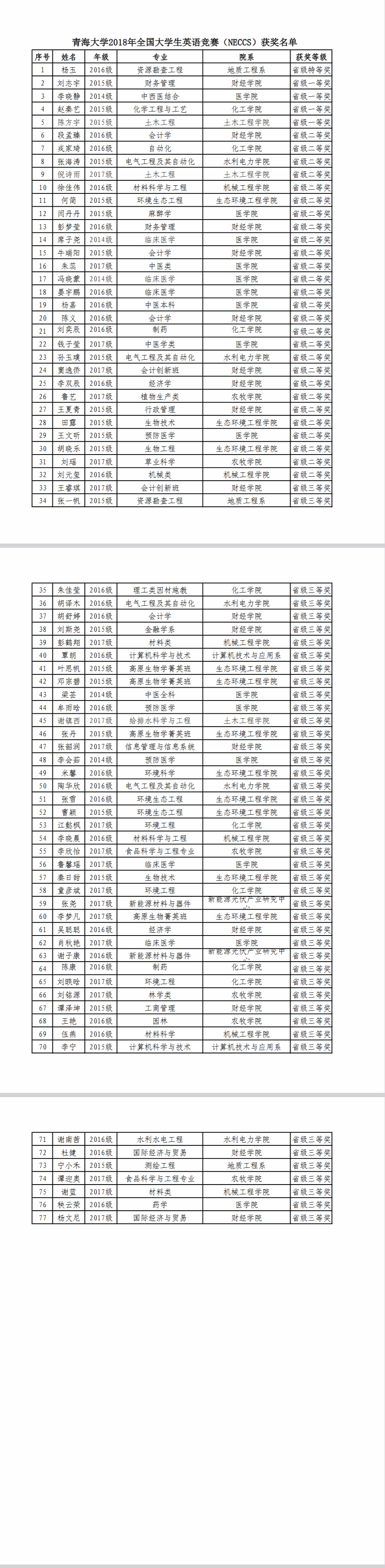 2018年全国大学生英语竞赛获奖名单