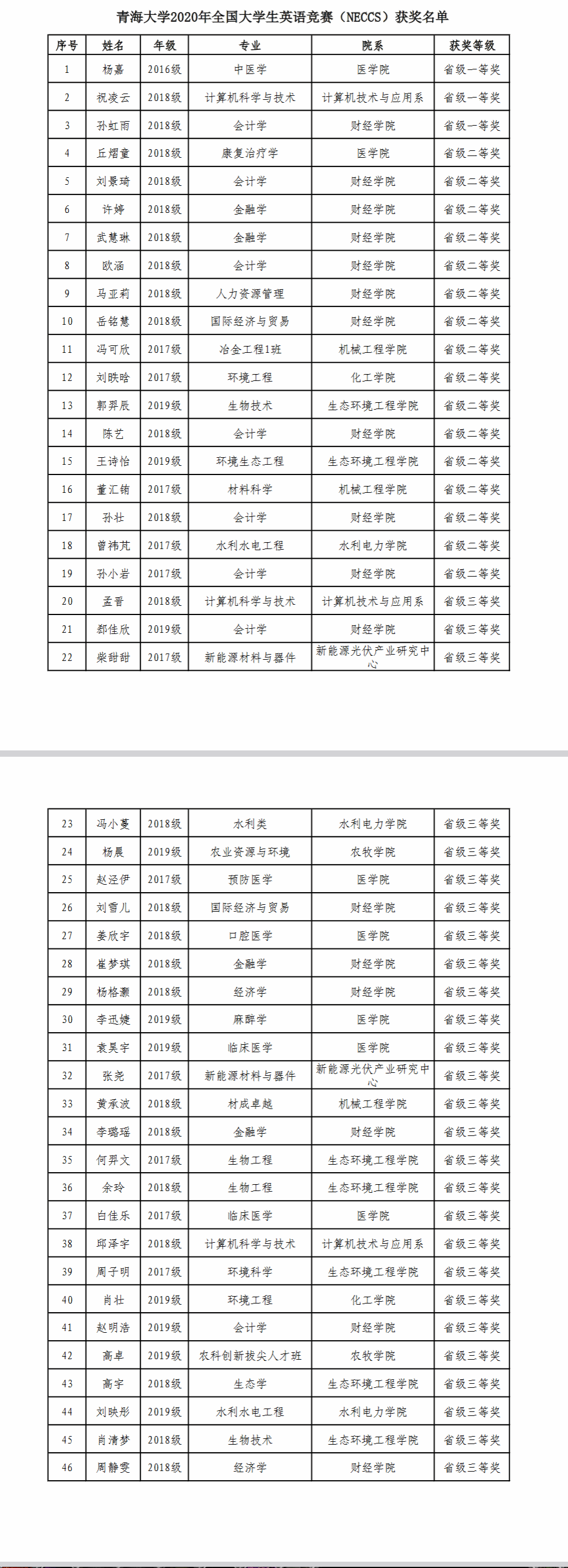 2020年全国大学生英语竞赛获奖名单