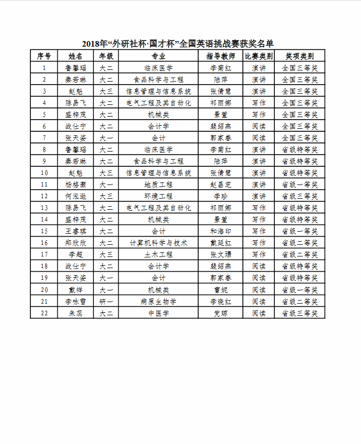 2018年外研社比赛获奖名单