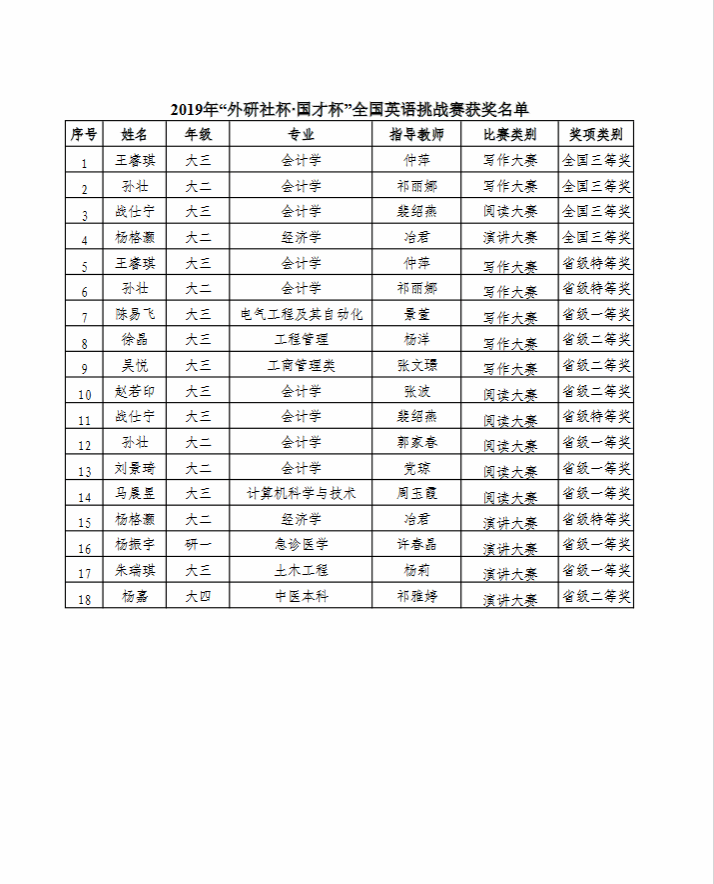 2019年外研社比赛获奖名单